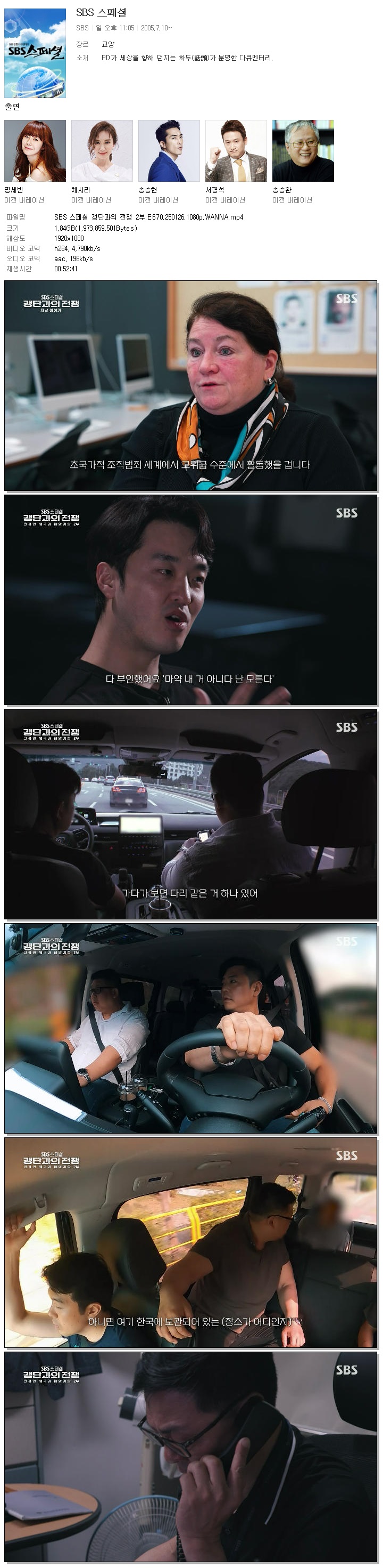 [SBS] SBS 스페셜 갱단과의 전쟁 2부.E670.250126.1080p.WANNA.mp4 1.8 G 00:52:41 1920x1080